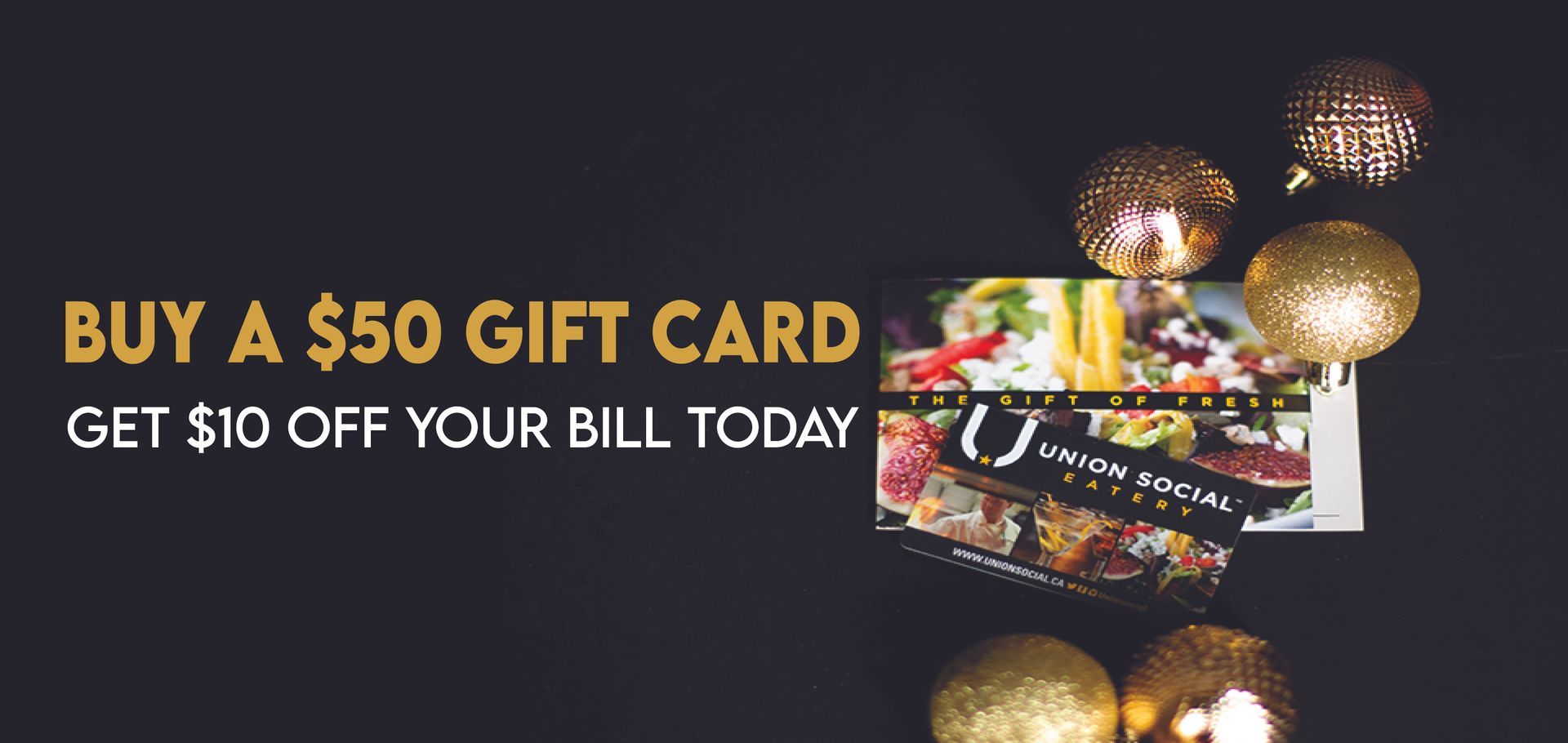 Spread the holiday cheer!! Give the gift of great food this holiday season. It’s the perfect time to stock up on Union Social gift cards…..for a limited time, when you purchase $100 in gift cards, receive a BONUS $20 gift card.